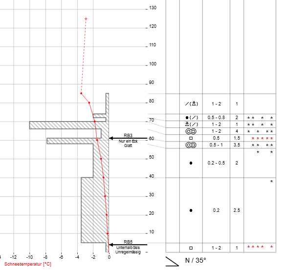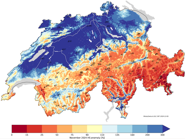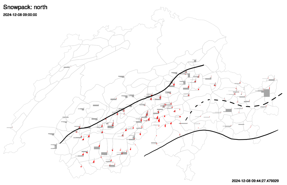 Zudem mussten oberhalb von rund 2800 m, wo bereits vor den Schneefällen seit der zweiten Novemberhälfte eine zusammenhängende Altschneedecke lag, an Nordhängen teils Schwachschichten aus kantig aufgebauten Kristallen berücksichtigt werden.
