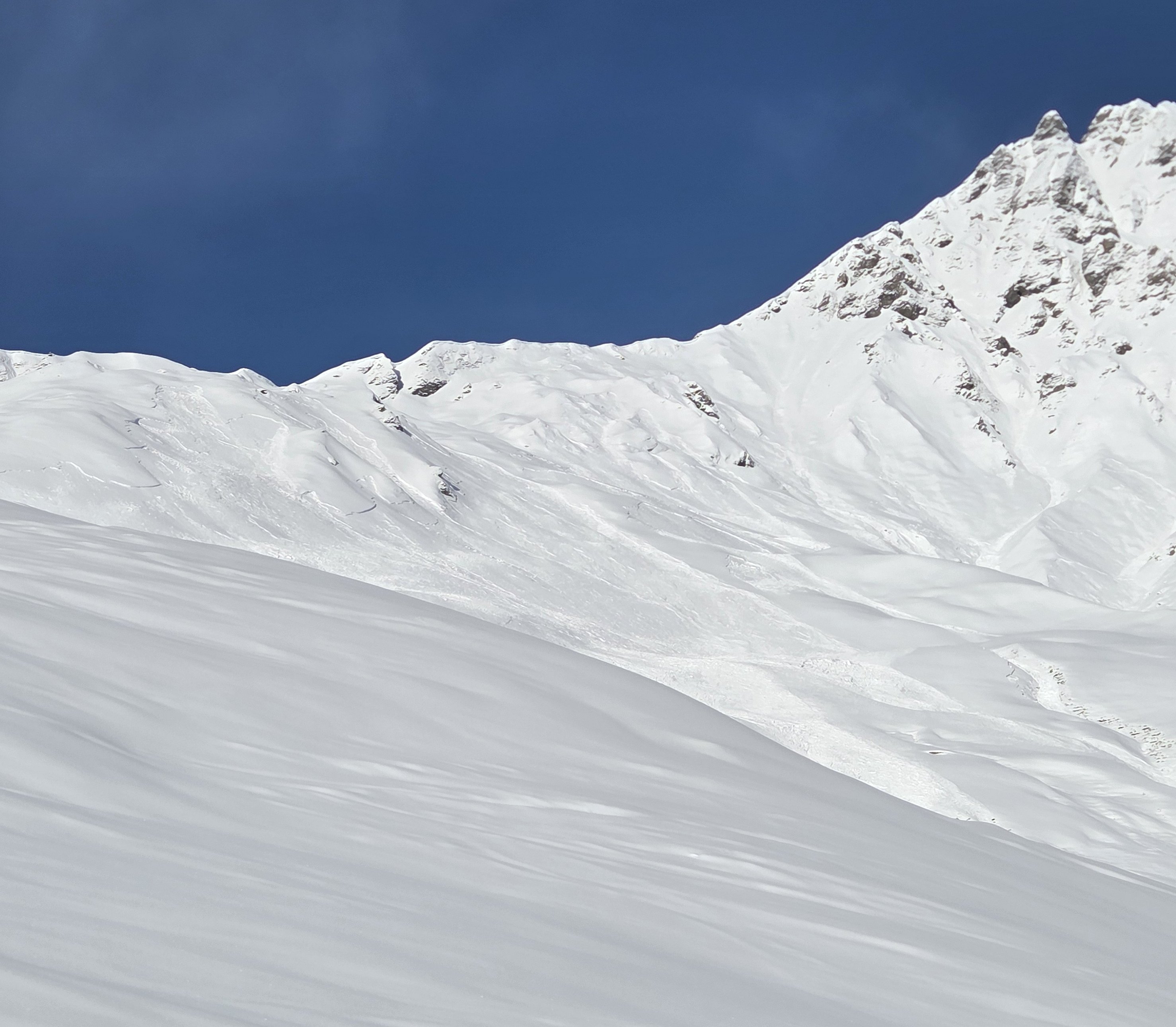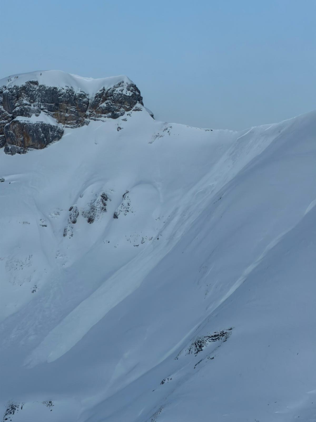 In den östlichen Randgebieten des Grossschneefalls (Bedretto, obere Leventina, Urseren) wurde während dem Schneefall nur zeitweise vor grosser Lawinengefahr (Stufe 4) gewarnt, da für diese Gebiete deutlich weniger Neuschnee vorhergesagt war. Die Altschneedecke war aber auch hier sehr ungünstig aufgebaut. Am Freitag zeigte sich dann rasch, dass auch in diesen Gebieten grossflächige spontane Lawinen abgegangen waren (z.B. Abbildung 6) und die Gefahrenstufe 4 (gross) während dem ganzen Niederschlagsereignis gerechtfertigt gewesen wäre.
