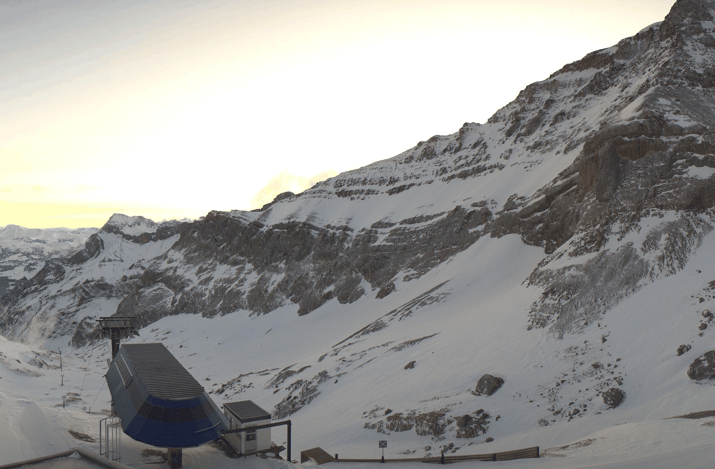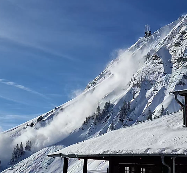 Mit dem Ende des Niederschlages in der Nacht auf Freitag liess die spontane Lawinenaktivität deutlich nach. Es wurde im Westen trotzdem auch für Freitag noch verbreitet vor grosser Lawinengefahr (Stufe 4) gewarnt. Einerseits war es nicht auszuschliessen, dass tagsüber noch die eine oder andere sehr grosse spontane Lawine abgehen würde. Andererseits war die Situation für Schneesport abseits gesicherter Pisten gefährlich. Es wurden vielerorts sehr erfolgreich Sicherheitssprengungen durchgeführt, so zum Beispiel im Skigebiet Glacier 3000 (vgl. Abbildung 5).