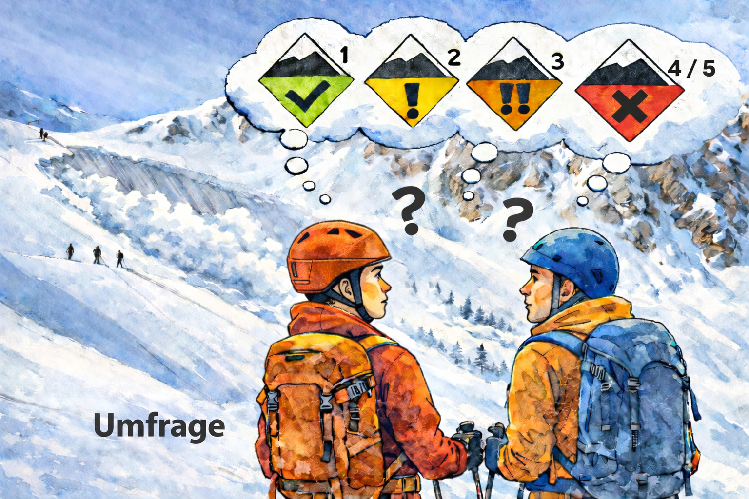 Und genau dafür brauchen wir deine Meinung. Mach bei unserer Umfrage mit. Hilf die Sprache der Lawinengefahrenskala zu verbessern. ⏱️ Dauer: ca. 10 Minuten.