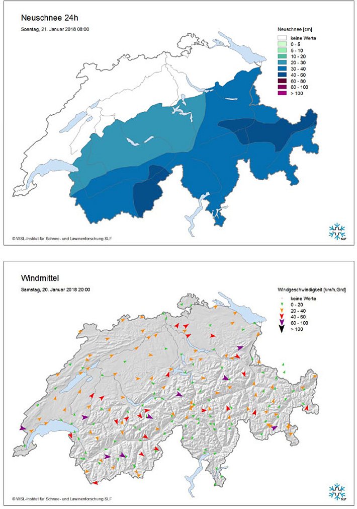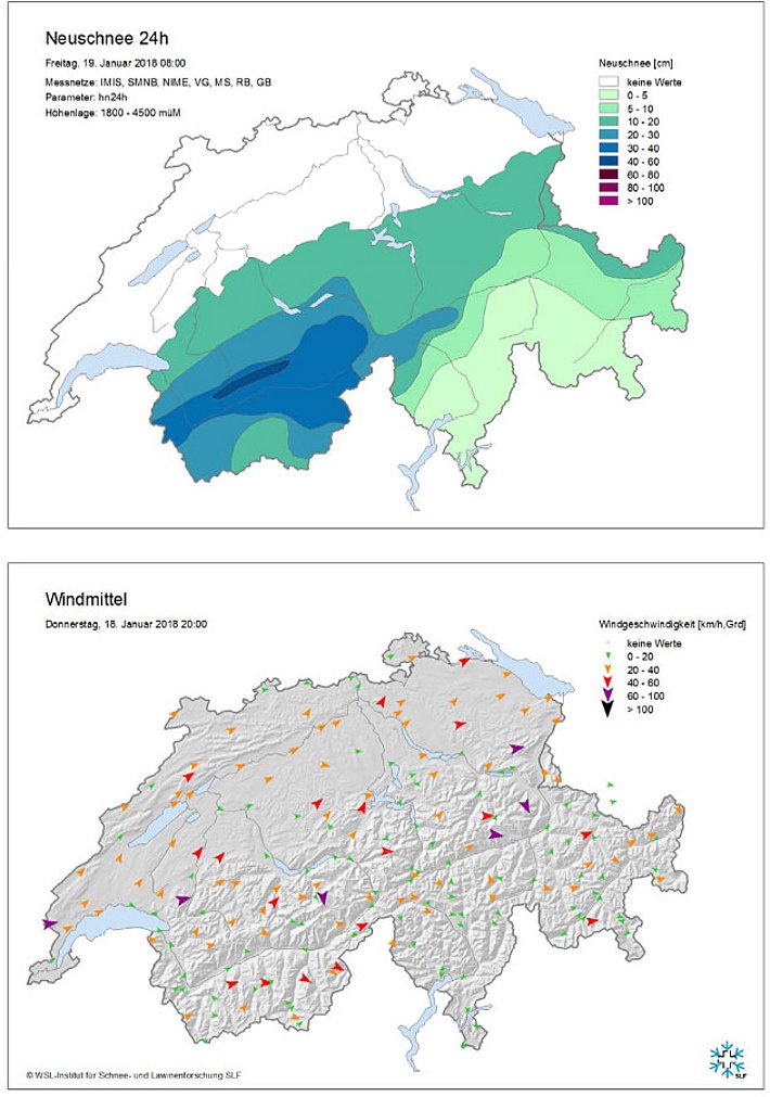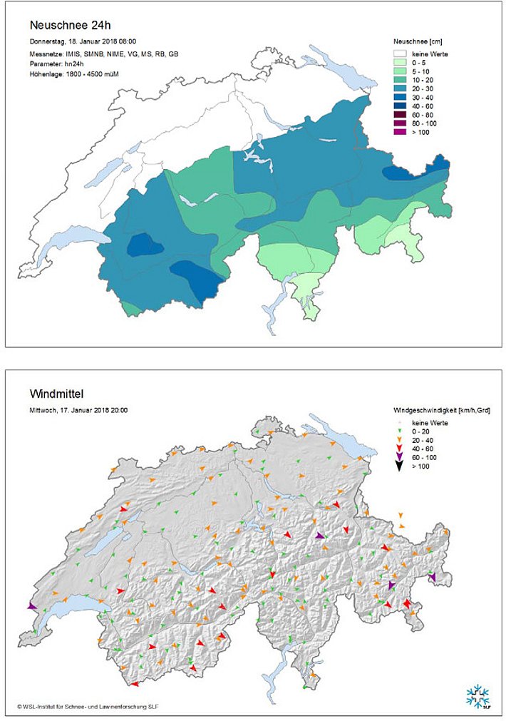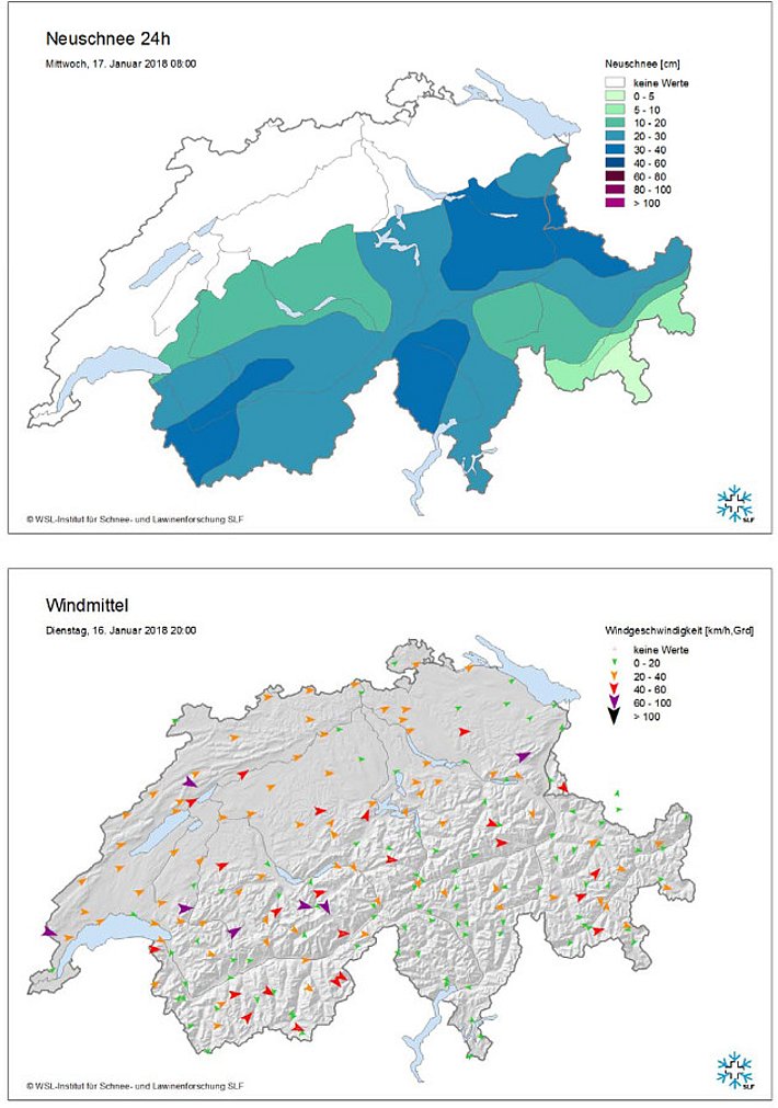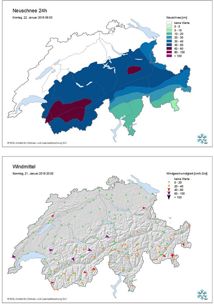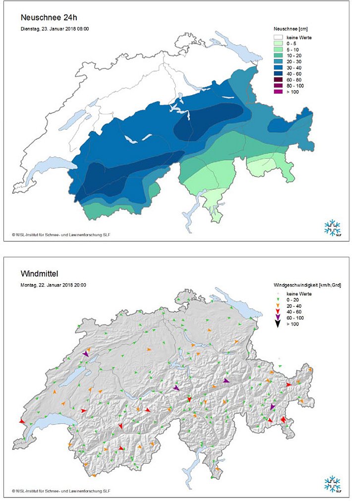 Auch wenn am 23. Januar 2018 die maximalen, je gemessenen Schneehöhen nur sehr vereinzelt erreicht wurden, barg eine so grosse Schneehöhe so früh im Winter trotzdem Gefahren:
