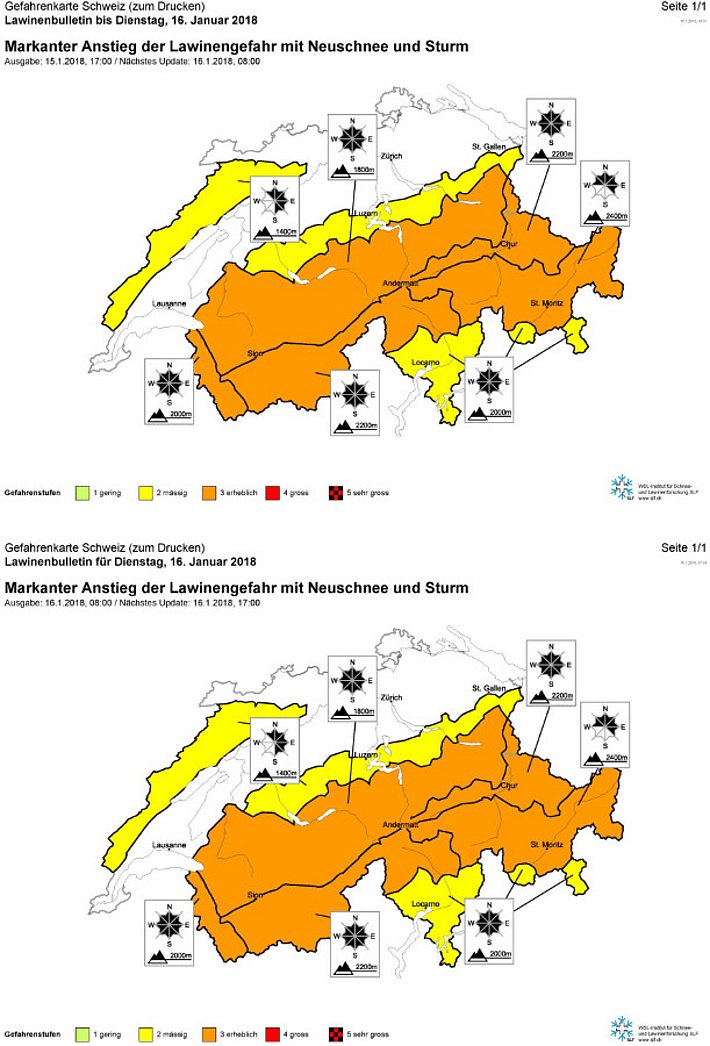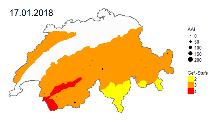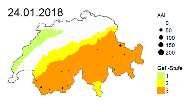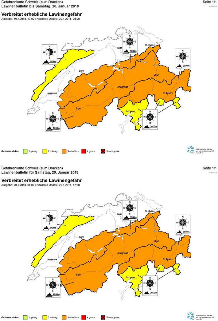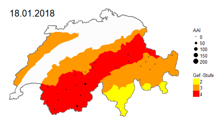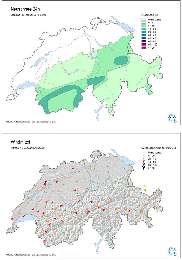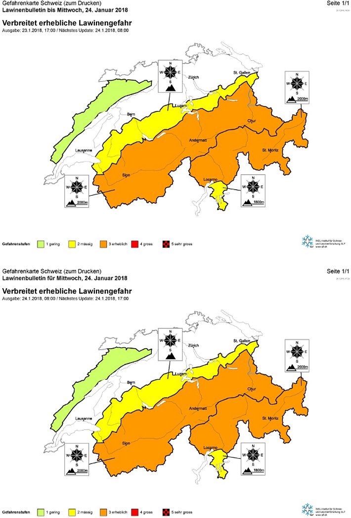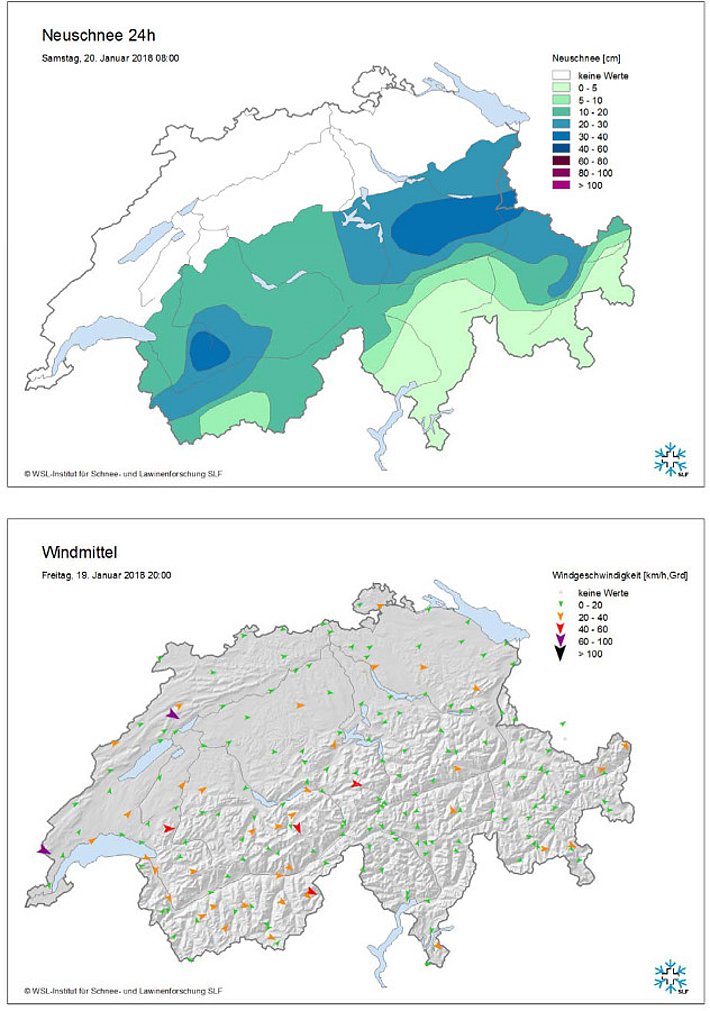 Auch wenn am 23. Januar 2018 die maximalen, je gemessenen Schneehöhen nur sehr vereinzelt erreicht wurden, barg eine so grosse Schneehöhe so früh im Winter trotzdem Gefahren: