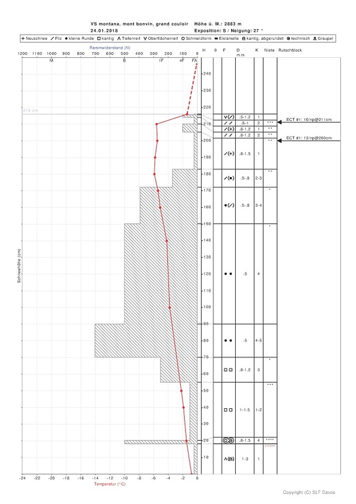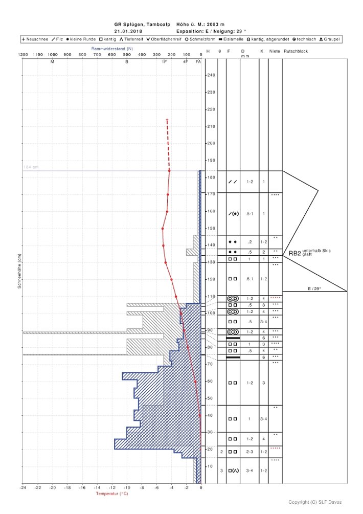 In der Folge zeigten Stabilitätstests und Lawinenanrisse, dass sich die oberflächennahen Schichten vom 15. Januar im Verlaufe der Niederschlagsperioden etwas verfestigt hatten. Die Lawinen vom 21. bis 23. Januar rissen zwar teils flächig, aber nicht immer so tiefgründig an, dass die Schneeoberfläche vom 15. Januar als Schwachschicht in Frage käme.