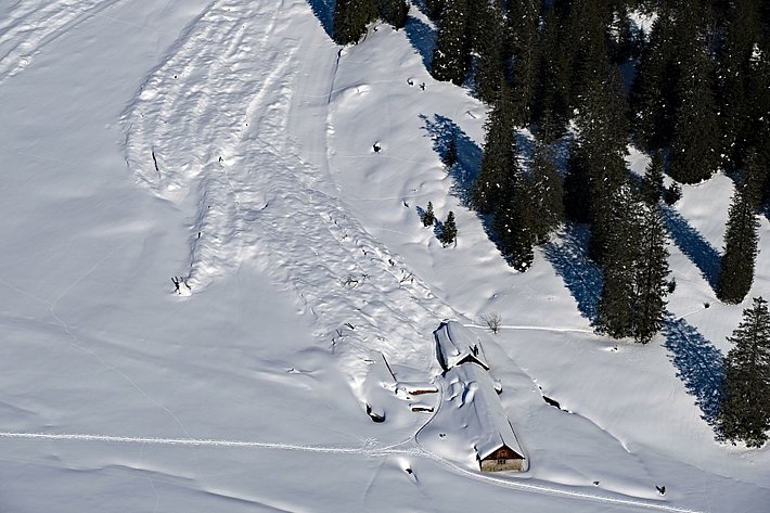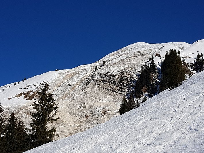 Am Alpensüdhang war der Schneedeckenaufbau günstiger und die Schneefälle schwächer. Es ereigneten sich dort deutlich weniger Lawinenabgänge.
