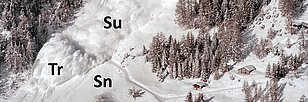 In einer Staublawine laufen komplexe physikalische Prozesse ab. Sie besteht im Wesentlichen aus drei Schichten, die während des Niedergangs miteinander interagieren (siehe Abbildung): eine dichte granulare Grundschicht, ein Übergangsbereich in Form einer pulsierenden turbulenten Strömung sowie eine verdünnte turbulente Schwebeschicht mit feinsten Partikeln (eine Staubwolke) die das Ganze bedeckt. Um diese Vorgänge zu verstehen und die Zerstörungskraft von Lawinen richtig abzuschätzen, schauen Forschende des SLF bei Experimenten im Lawinentestgelände im Vallée de la Sionne (Gemeinde Arbaz, VS) mit Messinstrumenten und Sensoren ins Innere der Lawinen. Bisherige Messungen deuten nun darauf hin, dass möglicherweise hochenergetische Impulse innerhalb einer Staublawine für die zerstörerische Wirkung verantwortlich sind. Sie zeigen zudem, dass sich Wellen auf der dichten Grundschicht ausbreiten und sich grosse zusammenhängende Strukturen in der Übergangsschicht bilden. Diese Vorgänge sind eng mit der zerstörerischen Impulsbildung verbunden.