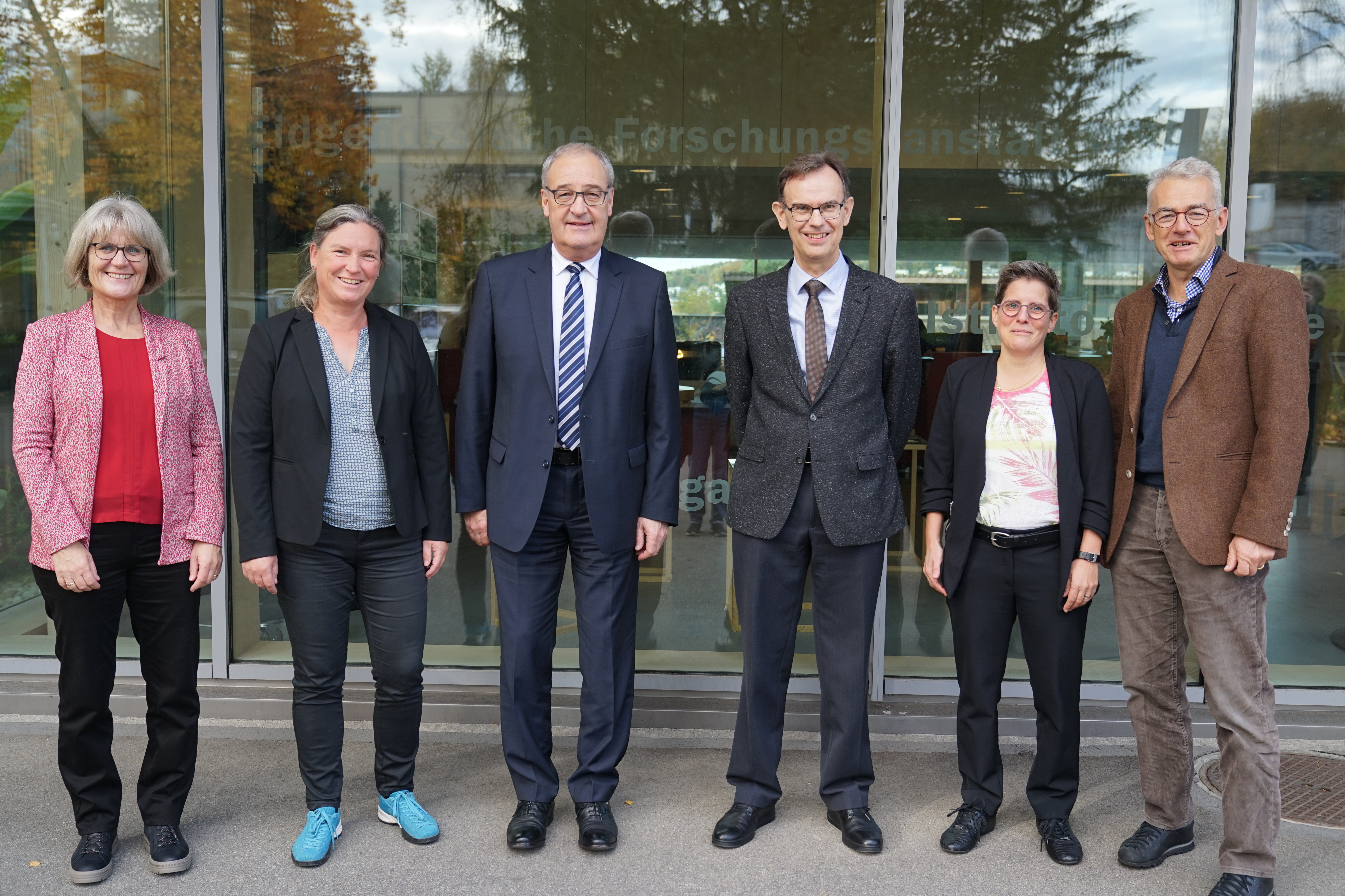 Am 6. November hat Bundesrat Guy Parmelin der Eidg. Forschungsanstalt WSL einen Besuch abgestattet. Als Vorsteher des Eidgenössischen Departements für Wirtschaft, Bildung und Forschung hat er sich vor Ort aus erster Hand über die Forschungsarbeit der WSL informiert und sich einen kleinen Teil unserer Versuchsanlagen angesehen.
