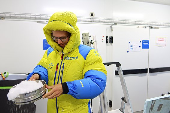 Jakob Schöttner forscht im Kältelabor an Schwachschichten im Schnee. Im Interview erklärt er, warum seine Arbeit dort ausgerechnet während einer Hitzewelle besonders anstrengend ist.