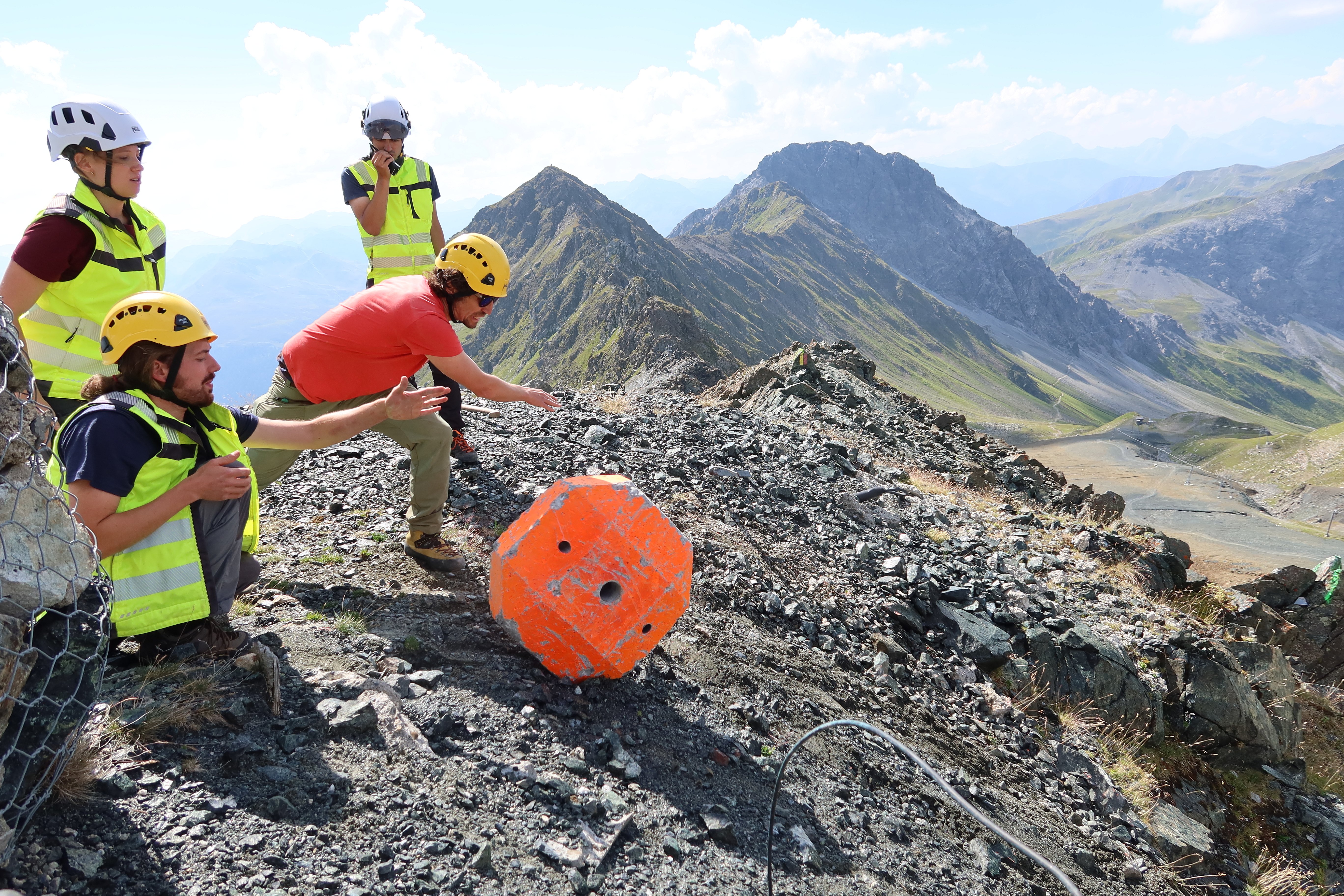Im Anschluss bestimmen die Helfenden per GPS die genauen Endpunkte, bei denen die Steine gelandet sind, bevor das Team die Sensoren einsammelt. Borner liest die Daten noch vor Ort aus, dann kommen die Sensoren in die nächste Charge der Steinblöcke. Die radförmigen interessieren ihn am Meisten: «Steht ihnen nichts im Weg, werden sie mit Abstand am schnellsten und gefährlichsten. Treffen sie aber auf ein Hindernis, können sie auf ihre flache Seite kippen und so sogar im steilen Hang liegen bleiben. Ihre Reichweite variiert also extrem.»