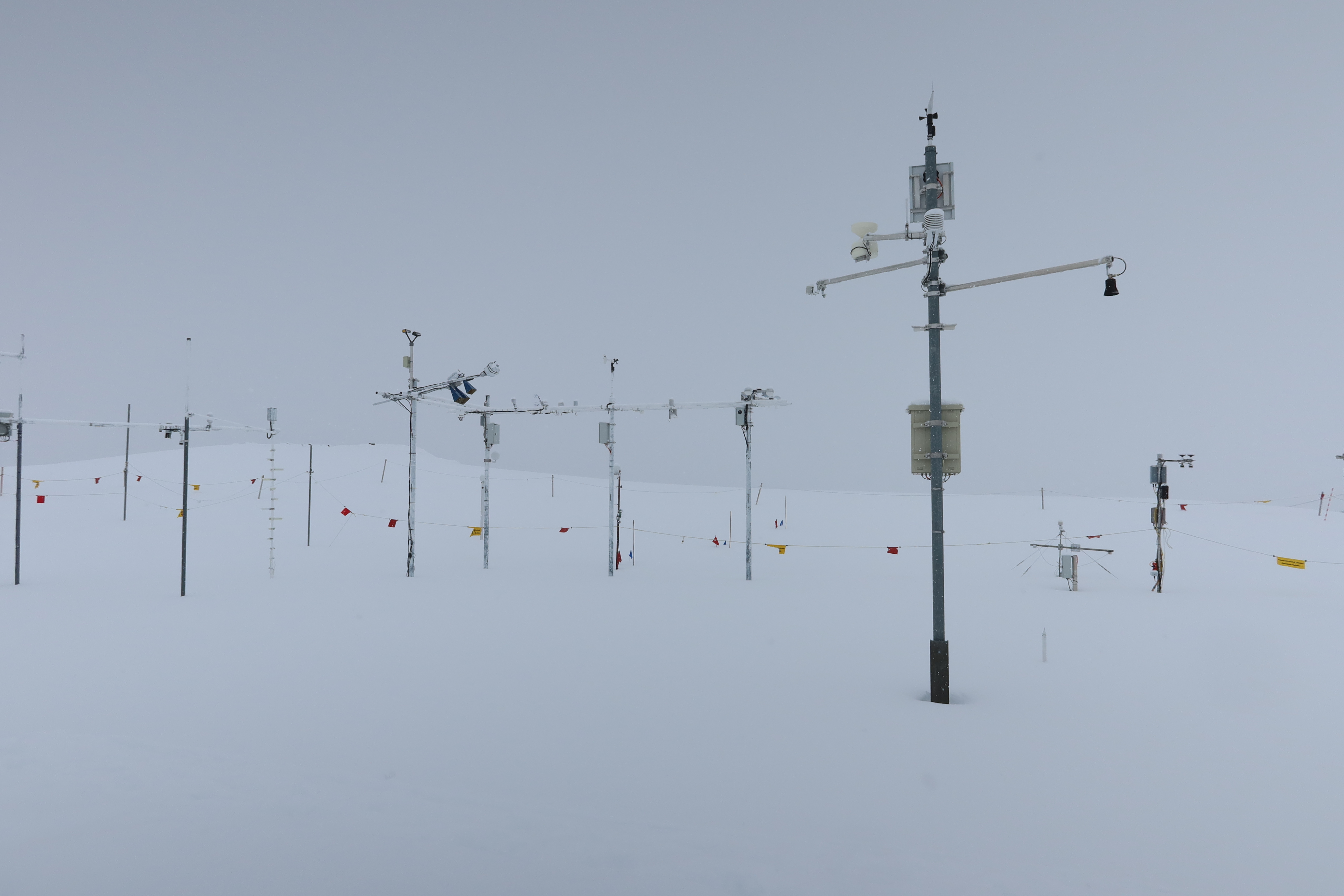 Oft ist es in der Wissenschaft wichtig, wie hier auf althergebrachte Verfahren zu setzen, auch wenn sie aus den 30er Jahren des vergangenen Jahrhunderts stammen. Denn um Hightech-Methoden und -Geräte zu entwickeln, braucht es verlässliche Datensätze. Die mühevolle Handarbeit liefert eine wichtig Referenz für moderne Messapparate. Tatsächlich hängen an zahlreichen Masten diverse Apparate wie Laserscanner, Ultraschallsensoren, Radar und vieles mehr. Auch Unternehmen aus der freien Wirtschaft nutzen die Expertise des SLF. Sie installieren immer wieder neue Sensoren auf dem Versuchsfeld und vergleichen die Daten ihrer Instrumente mit den Zahlen des SLF.
