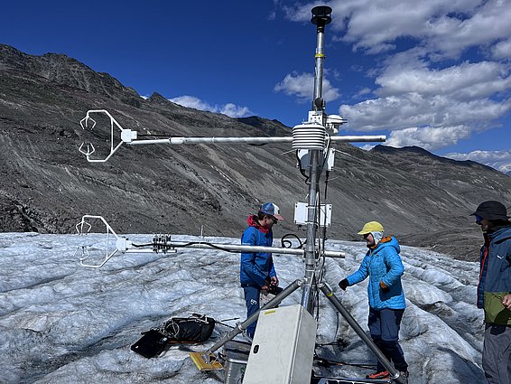 Um diese komplexen Zusammenhänge zu untersuchen, haben Forschende etwa 15 meteorologische Stationen unterschiedlicher Größe auf dem Hintereisferner installiert, die Temperatur- und Windfelder sowie damit verbundene, turbulente Austauschprozesse messen. Während einer intensiven Messperiode haben sie zudem alle drei Stunden atmosphärische Profile mithilfe von Sonden und Drohnen erstellt und das Temperaturfeld nahe der Gletscheroberfläche mit Infrarotkameras in hoher zeitlicher und räumlicher Auflösung aufgezeichnet.