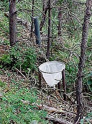 In den Buchenbeständen wird bei 5 Bäumen der Stammabfluss gesammelt. Mittels einer Silikonrinnen, die in einer Spirale um den Stamm gelegt ist, wird der Stammabfluss gesammelt und in ein automatisches Wippensystem geleitet, das die Menge registriert und eine abflussproportionale Teilprobe erstellt. Der Stammabfluss wird zurzeit auf einer Buchen LWF-Fläche gesammelt.