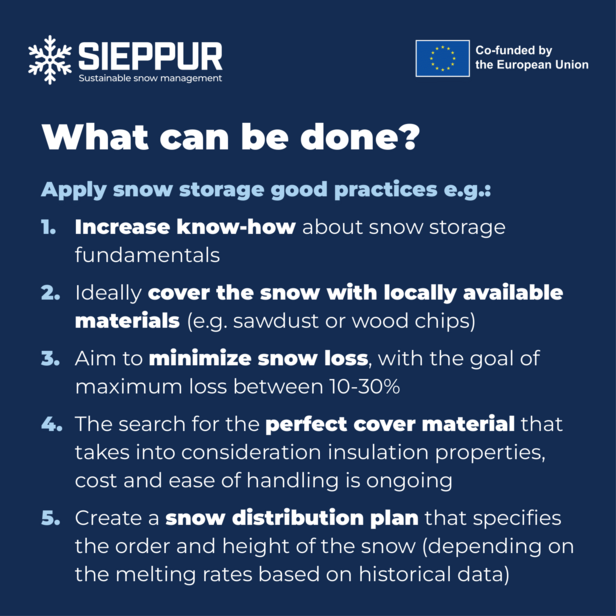 The main objective of SIEPPUR is to develop and implement concrete measures to enhance the sustainability of snow management in Nordic snow sports. Based on an initial assessment of current practices in selected snow sports venues, SIEPPUR will identify best practices for minimising resource use and improving sustainability governance in snow sport organisations. Based on modeled snow climatological scenarios for venues across the continent, the project will develop new knowledge to advance the different dimensions of sustainable snow management practices from production, storage, transport, grooming to handling. The project will translate the new knowledge into implementation roadmaps for different geographical circumstances. SIEPPUR will provide practitioners with helpful management tools and techniques to monitor and minimise water and energy use and to optimise the efficiency of snow management.