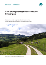 Fankhauser M., Torregroza L., Hunziker M. (2025) Aufwertungskonzept Moorlandschaft Hilferenpass. Modellvorgehen für die partizipative Erarbeitung eines Aufwertungskonzeptes basierend auf lokalen Ansprüchen. WSL Berichte: Vol. 175. Birmensdorf: Eidg. Forschungsanstalt für Wald, Schnee und Landschaft WSL. 62 p. doi.org/10.55419/wsl:40913