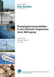 Rivas J., Schmid B., Seidl I. (2018) Energiegenossenschaften in der Schweiz: Ergebnisse einer Befragung. WSL Berichte 71. Birmensdorf: Eidg. Forschungsanstalt für Wald, Schnee und Landschaft WSL. 108 S.