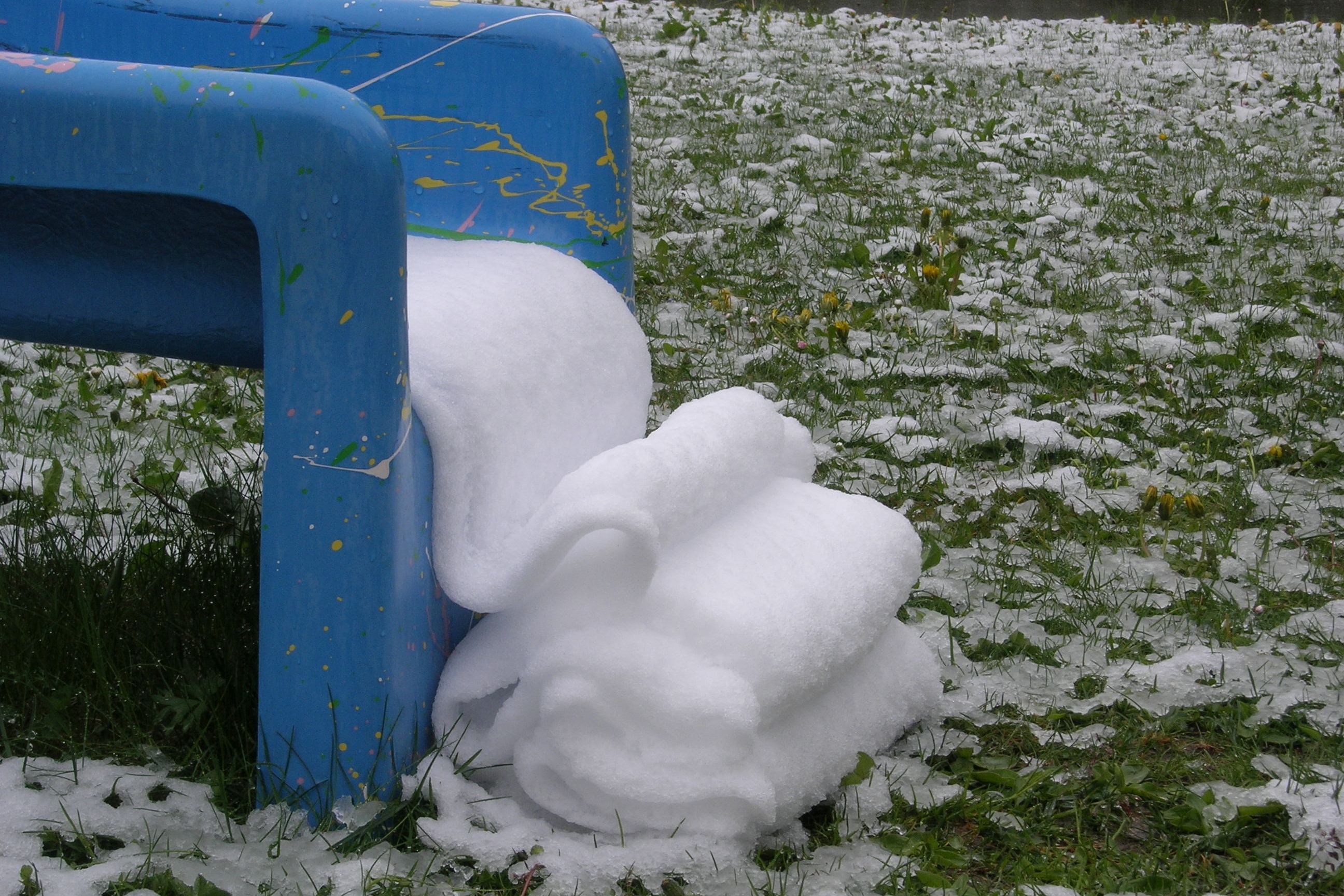 Bei höheren Temperaturen und bei langsamer Bewegung lassen sich Eiskristalle plastisch verformen, ohne dabei zu brechen - dabei entsteht gar kein Geräusch. Für derartige Verformungen sind in einem Eiskristall bei Temperaturen um den Gefrierpunkt nur ganz geringe Kräfte nötig: Die einzelnen Schichten des Kristalls können gegeneinander wie Spielkarten in einem Stapel verschoben werden. Insbesondere bei Temperaturen nahe am Nullpunkt reicht bereits das Eigengewicht aus, damit die Schneedecke sich fortwährend verformt, sie kriecht oder besser, fliesst wie eine zähe Flüssigkeit. Das lässt sich sehr schön beobachten, wenn kleine Schneeüberhänge am Rand eines Daches nicht abbrechen, sondern hängenbleiben, oder wie in Abbildung 1 beim Berühren des Bodens Falten werfen.
