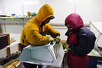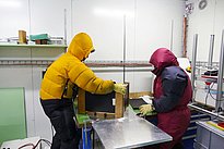 Im Labor hat er sich - gut eingepackt gegen die Kälte - auf die Expedition vorbereitet. Dabei musste er "nur" - 40°C aushalten. Hingegen kann es in der Antarktis noch deutlich kälter werden.