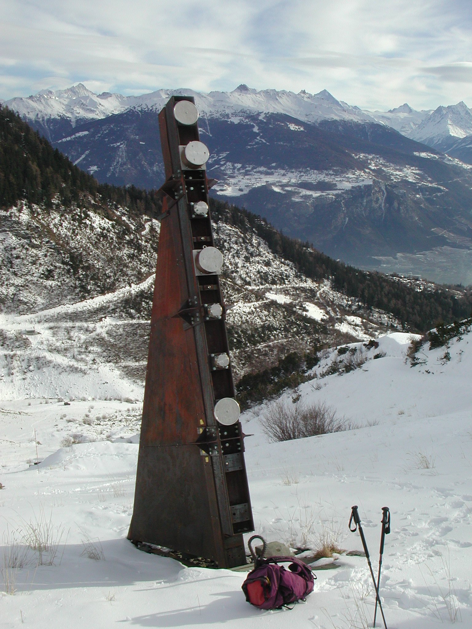 • Der 19 m hohe Mast wurde ebenfalls 1997 erbaut, 1999 durch eine Lawine zerstört und danach in einer verstärkten Version neu erstellt. Im unteren Teil ist er alle 10 cm mit Geschwindigkeitssensoren bestückt, ausserdem sind an ihm Druck-, Temperatur-, Dichte- und Fliesshöhensensoren angebracht.