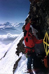 Um einen raschen und flexiblen Einsatz vor und nach einer künstlichen Lawinenauslösung zu gewährleisten, wurde nicht wie üblich ein Flugzeug, sondern ein Helikopter als Flugplattform gewählt. Eine mit zwei Händen halt- und bedienbare Linhof-Mittelformatkamera (9 x 12 cm, Abbildung 2) wird für die photogrammetrischen Aufnahmen verwendet. Schräg-/bzw. Senkrenkrechtaufnahmen im Massstab 1:5'000 werden durch einen Operateur, der aus der offenen Türe des Helikopters lehnt, gemacht. Die Aufnahmen erlauben selbst bei nicht optimalen Kontrastbedingungen eine Messgenauigkeit von ca. ± 25 cm.
