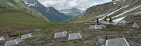 Oberhalb der Baumgrenze stehen uns mehrere Forschungsflächen für verschiedene Fragestellungen zur Verfügung. Auf einem Teil der Schweizer Flächen von GLORIA – einem internationalen Netzwerk an Dauerflächen in alpinen Gebieten – sowie weiteren Berggipfeln erforschen wir, wie sich die Gipfelflora über die Jahre verändert. In den vom SLF betreuten Schweizer ITEX-Versuchsflächen führen wir experimentelle Erwärmungen in „open top chambers (OTCs)“ durch. Und bei den IMIS-Wetterstationen untersuchen wir, wie das Wachstum der Vegetation mit Wetter- und Klimadaten korreliert.