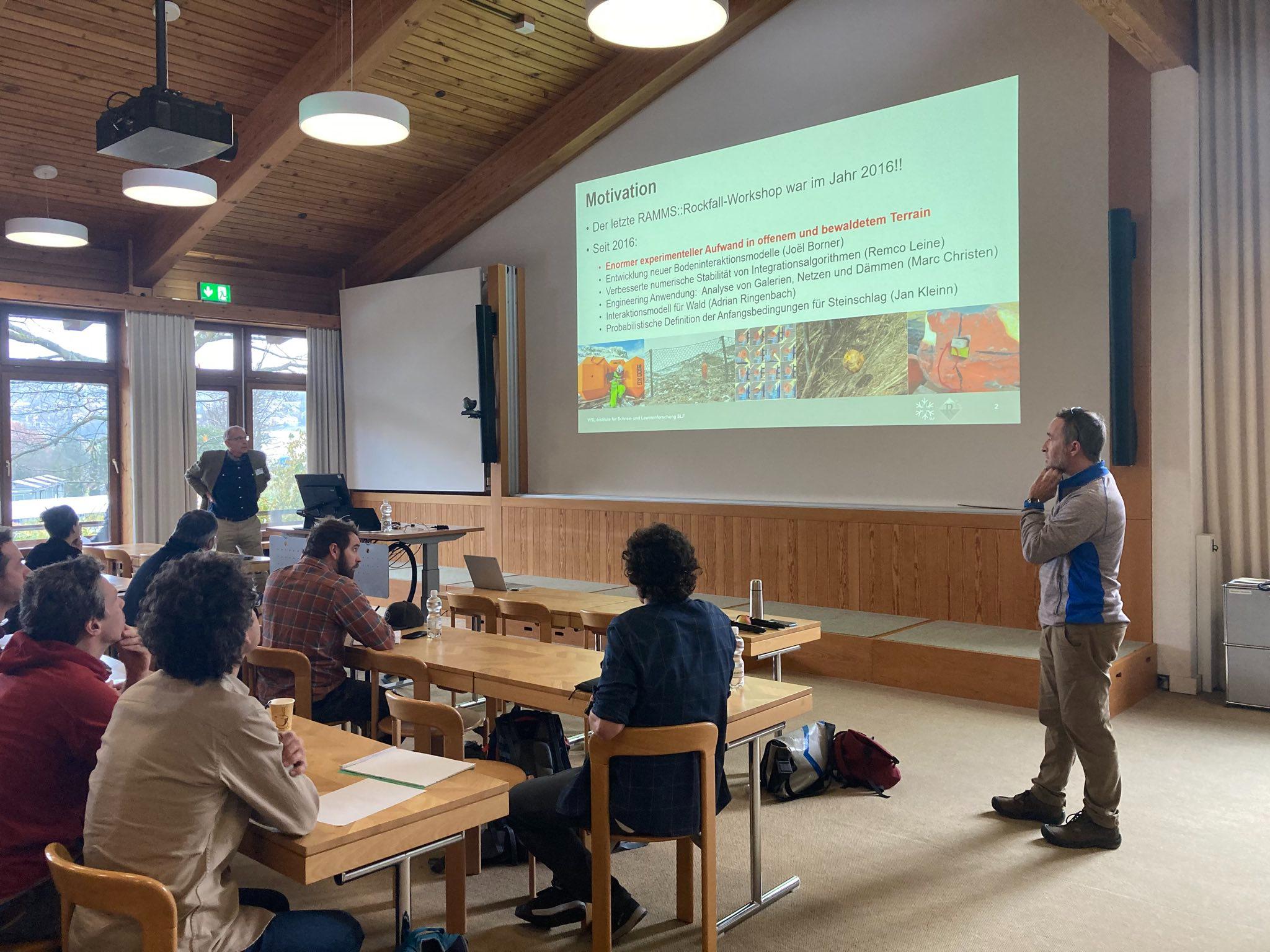 Last week, the RAMMS team invited natural hazard practitioners from Switzerland, Germany and Austria to an XChange workshop on rockfall. The aim of the workshop was to present new research findings from the last 5 years, which have led to a major update of the RAMMS::Rockfall software. The new rockfall software will be released in early 2024. The key new features presented were: