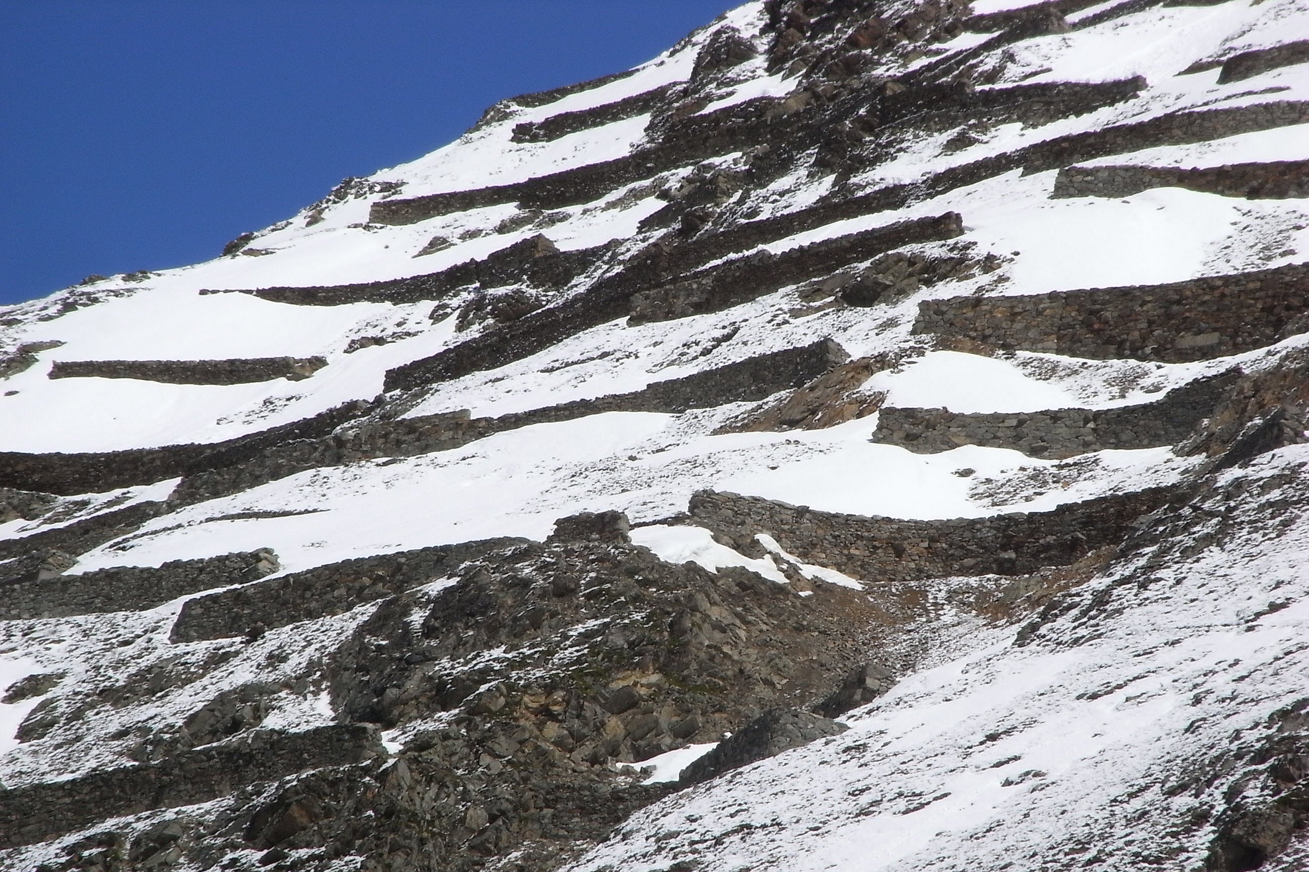 Life in the Swiss Alps would be inconceivable without avalanche protection measures. The earliest evidence of structural defences for individual buildings dates back to the 17th century when, in around 1600, a 4-metre-high and 80-metre-long avalanche deflection wall was built in Leukerbad, and a spaltkeil was constructed to protect a church in Davos (Fig. 1). Likewise in the distant past, buildings were also provided with underground avalanche bunkers, where the residents could seek refuge in case of avalanche danger. The first snow sheds were built in 1805, including on the Simplon Pass. At the time, most avalanche defences consisted of bricks and mortar. In the early 19th century, the first defensive structures were erected in avalanche starting zones – walls and earthen terraces were constructed for the purpose of actually preventing avalanches. In the period to 1938 a network of such defences spanning around 1,000 km was constructed throughout the Swiss Alps (Fig. 2). Johann Coaz, who was one of the pioneers of avalanche protection in Switzerland, already realised around 1910 that the terraces and walls that had been built were too low to afford effective protection (Fig. 3). As long ago as around 1939, the SLF published the first ground-breaking insights into calculating snow pressure, and erected experimental defences on the Dorfberg to investigate the effectiveness of different types of works (Figs. 4 and 5).
