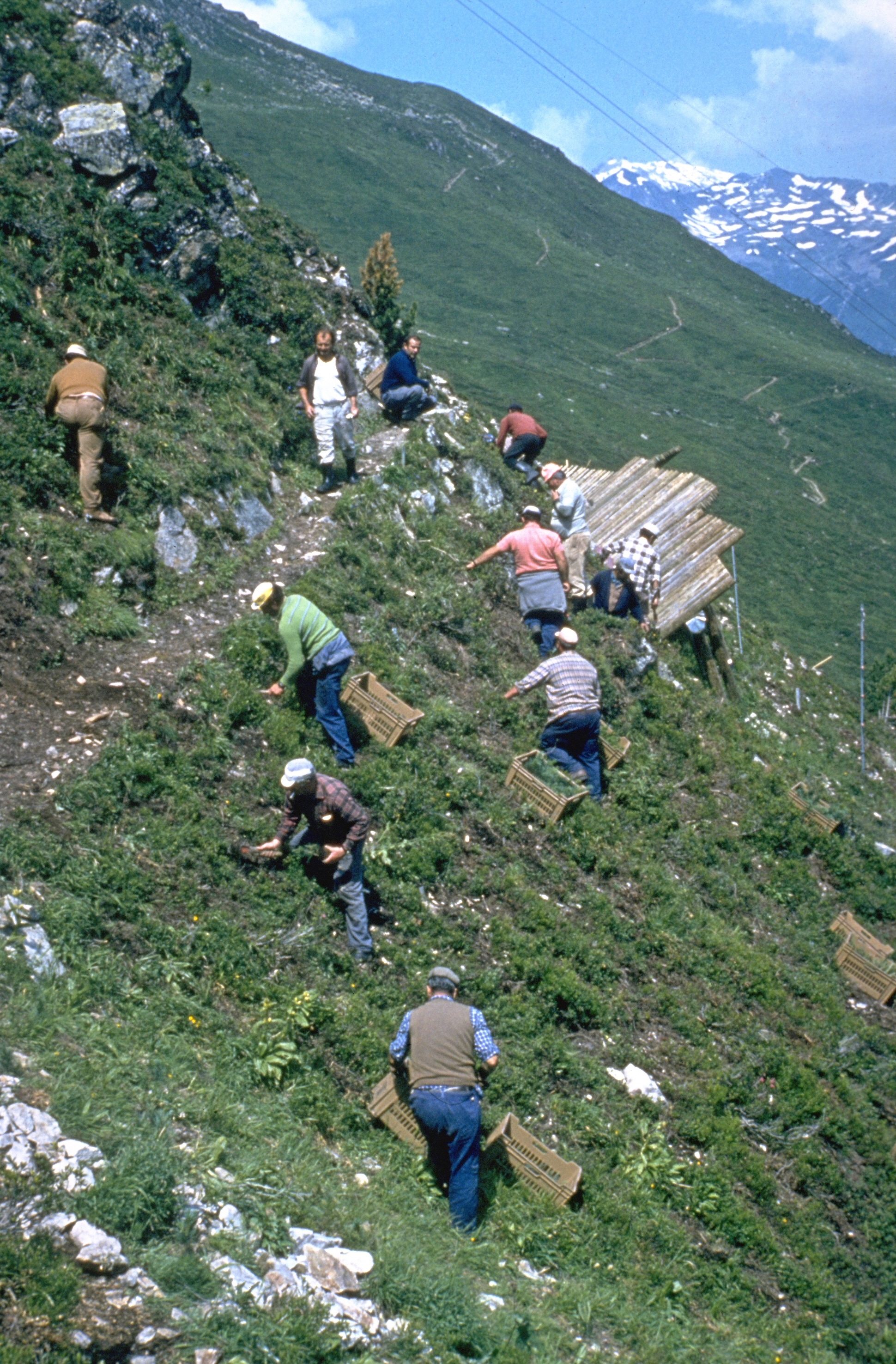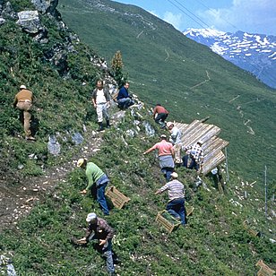 Bereits in den 1950er-Jahren fanden die ersten Forschungsprojekte gemeinsam zwischen der Eidg. Anstalt für das forstliche Versuchswesen EAFV und dem SLF (seit 1989 in der WSL vereint) statt. 1975 folgte die Pflanzung von 92 000 jungen Bäumen (Arven, Bergföhren, Lärchen), um Möglichkeiten für den natürlichen Lawinenschutz durch Bäume an und oberhalb der Waldgrenze zu erforschen.