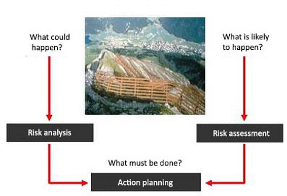 Damage caused by floods, debris flows, landslides, rockfalls, avalanches, storms and earthquakes cannot be completely avoided, despite significant investments in protective measures. Absolute safety is not possible. With broad-based risk management, however, we can attempt to prevent or minimise damage.