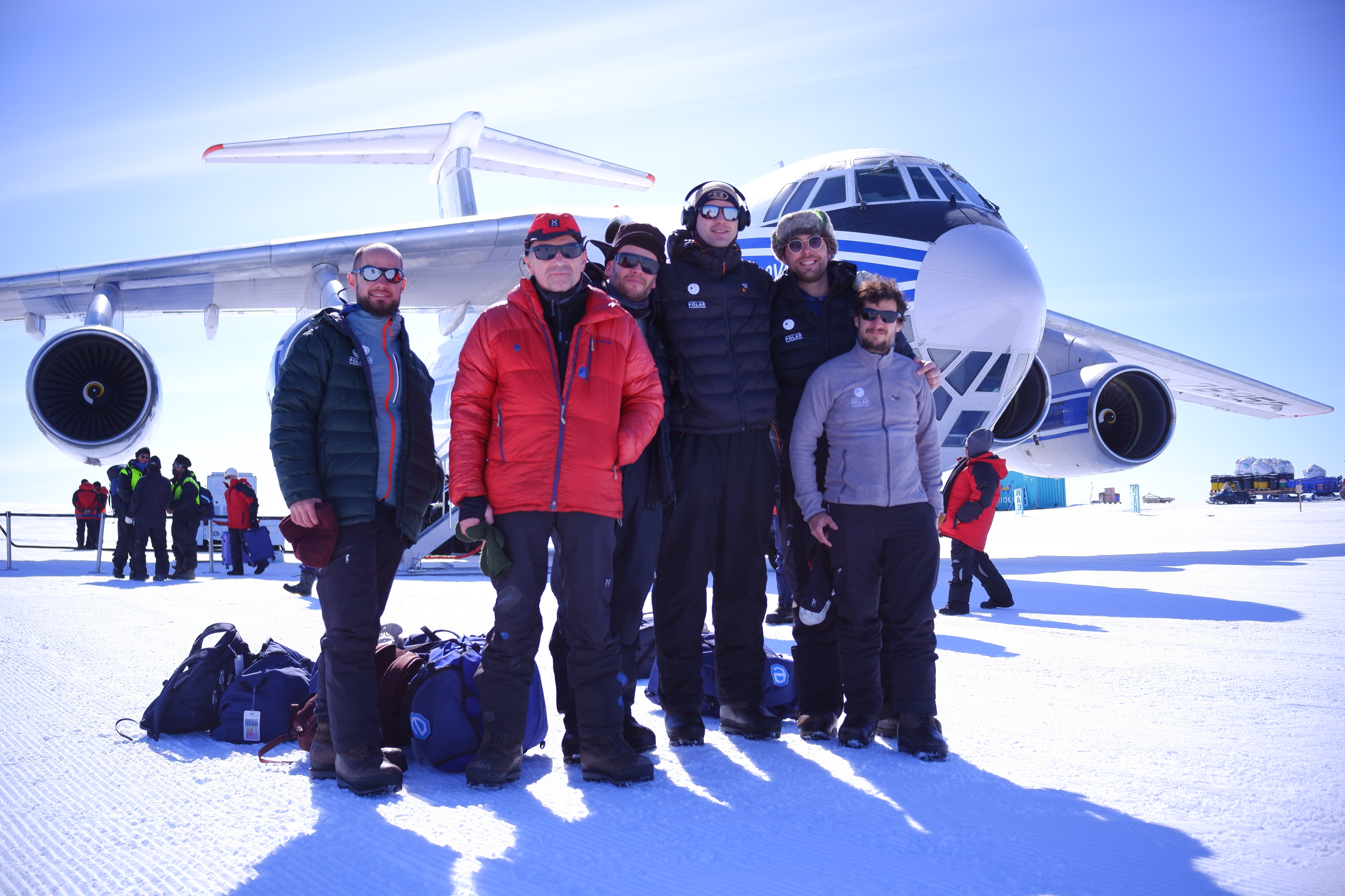 Finally, 4200 km and 5:30 minutes later we arrived to Antarctica, and I get off the plane at a pleasant -4 °C on a prepared landing strip near the Russian base Novolazalrevskaya and set foot on the inhospitable plain of East Antarctica for the first time. There we were invited to wait a few minutes, or hours (in Antarctica you never know when the next transport will leave) in the canteen of the airfield, where Dima, the Russian cook, gives us food. Much earlier than we thought, we were told to go to our next plane. An old but very reliable DC-3 from 1937, a plane that was used for transport during the Second World War. The only passengers this time were the 6 members of the expedition heading to the Belgian station Princess Elizabeth with a large number of scientific material and supplies for the station. We took off on the last flight of the long trip and I spent it looking out through the window at the white infinity of the continent, but especially at the different forms that the snow takes. It seems incredible that in such a flat place the snow changes so much. We will talk much more about that later. An hour and a half later we finally arrived at the base, unloaded the plane and got on a motorized transport with our luggage, material and supplies, that took us the last two kilometers to the Antarctic station Princess Elizabeth.