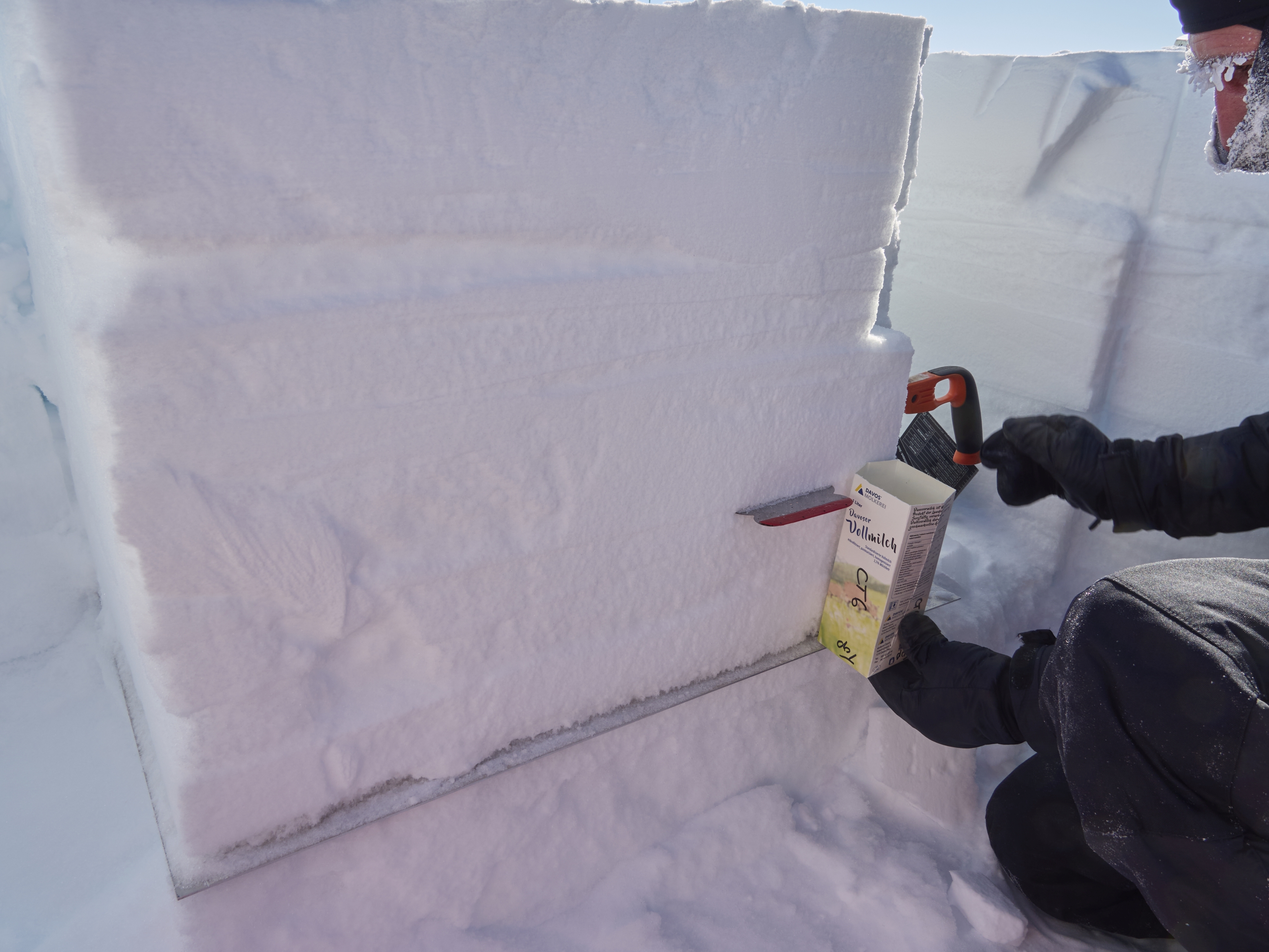 Vito assigns me a spot in the “forbidden area”. This is situated on the side away from the wind (usually) and isn't contaminated by soot or other impurities. Also, the location of all activities is precisely logged to ensure that undisturbed snowpack is always available. So a day later I started shovelling, only to suddenly come across cracks at a depth of one metre. Obviously, my first thought was: these so-and-sos have assigned me a test site like Emmental cheese, full of cracks and small cavities. But the course of the snow layers around the cracks looked very natural, not at all as if snow had blown in or been shovelled back in. Feeling a little uncertain, I picked up the phone during my lunch break and called my retired ex-boss Martin Schneebeli. I hadn't quite got to grips with the time difference yet, so he was rather surprised to receive a call in the early hours of the morning – but hopefully also pleased to hear from me. He explained the phenomenon. When the snowpack cools down to −60°C in winter, the snow loses its plastic flow properties and behaves almost like an ordinary material. It contracts as it cools down, which inevitably results in some cracking. Reassured, I now simply avoid the cracks when profiling.