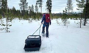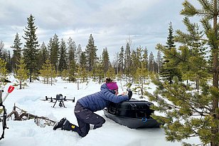 During our last days in Finland, our team ventured off the FMI grounds in pursuit of different forest structures. Since our prior efforts in this field campaign focused on the forests around FMI, we wanted to ensure we covered a range of canopy structures that are representative of the Finland boreal forest. This effort involved transporting the M300 on a sled in treacherous snow conditions to more remote locations.