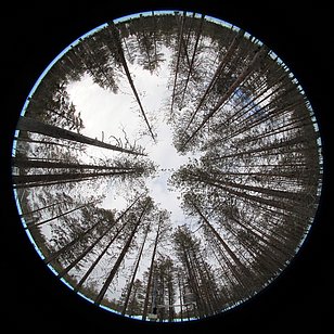 Since the hemispherical images only give us information about a single point, or a few points along a transect, we can use LiDAR to reproduce the hemispherical point of view of the forest at much larger scales. A combination of the detailed forest structure information from both hemispherical photographs and LiDAR have allowed us to develop models for solar and thermal radiation in forests.