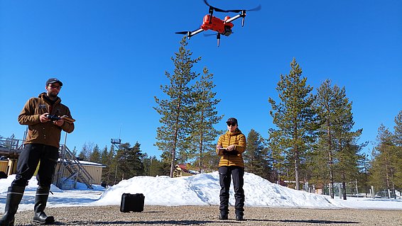 Clare Webster from the University of Oslo (UiO) Department of Geosciences Drone Lab flew a hand-built drone inside the forest to measure vertical profiles of air temperature and wind, complementing the stationary measurements at the micro meteorological stations. The drone, named Flamingo, was built by her colleague Norbert Pirk as part of a “drone swarm” he uses to measure carbon and energy exchange in the arctic tundra. Our visit to Sodankylä was a perfect opportunity to test whether such drones can also be used to measure vertical variations in forest micrometeorology that can’t be captured by our micro meteorological stations.