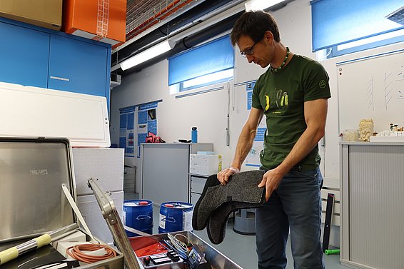 Matthias Jaggi ponders, warm boot liners dangling in his hand. Where should they go? The aluminium box in front of him is almost full, but the boots have to go in. Definitely. At the end of August it is still pleasantly warm, even in high-altitude Davos. But the SLF technician will be needing those boots soon. He is preparing for an expedition. His luggage will be setting off in September. What doesn't go in, he'll have to manage without. He can't buy anything where he is going: there are no shops, and online deliveries are out of the question. Jaggi is heading into the cold.