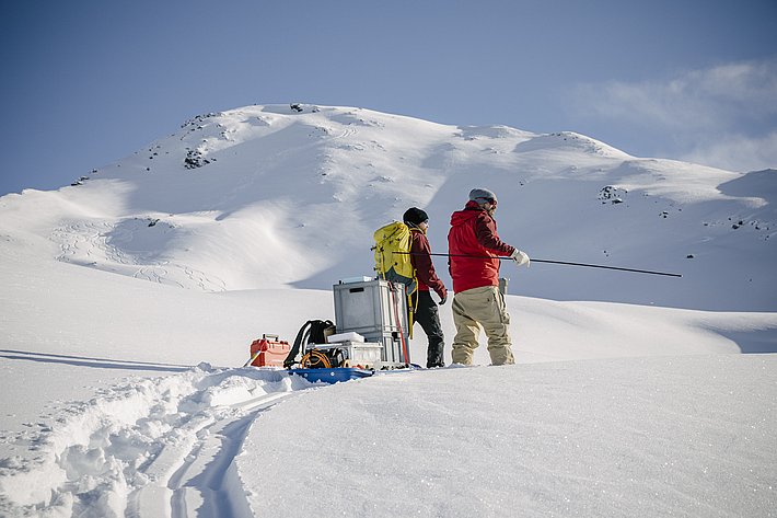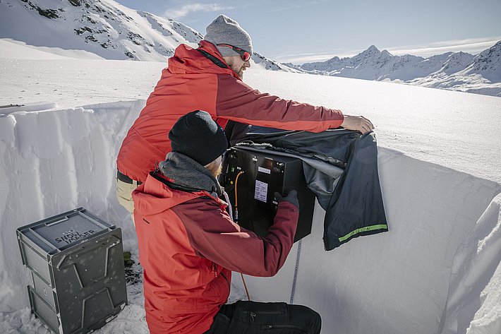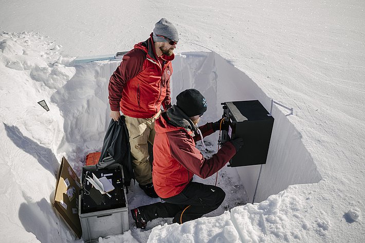 SLF researchers test a device developed in-house to identify layer boundaries in snow. Ultimately, the aim is to have the equipment mass produced for widespread use. A photo series. You can read more about the test day in the snow, the technology and how it works in the latest issue of DIAGONAL.