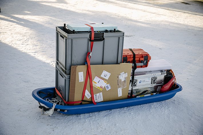 The scientists packed around 40 kilograms of kit on their sledge. (Photo: Bruno Augsburger)