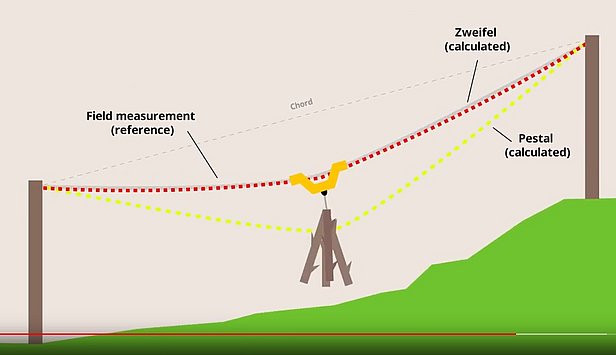 With his WSL colleagues Laura Ramstein, Janine Schweier and Fritz Frutig, Bont tested his findings on the steep slopes of the Tösstal, Toggenburg and Pilatus. The forestry companies Nüesch & Ammann AG and Abächerli AG worked with them. They measured the built cable roads and determined the skyline sags at different loads. At the anchor tree, they determined the skyline tensile forces using load cells. Back in the office at WSL, Bont compared the data with those calculated by Seilaplan. And indeed: The calculation method according to Zweifel led to more accurate predictions of the skyline sags and the skyline tensile forces than those according to Pestal. For all span lengths, the Zweifel formulas integrated in Seilaplan provided an accuracy of about +/- one meter for the sag - a very good result. The slight overestimation of the skyline tensile forces is to be seen as a positive factor, as it puts the user on the "safe side" when planning.