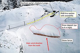 The snow fence proved effective last winter, with several thousand cubic metres of snow reaching heights of up to four metres being deposited on the leeward side of the fence. "Without the fence, this snow would have been deposited around the rails and the portal," says Stefan Margreth, Head of the SLF's Avalanche Protection Measures research group.