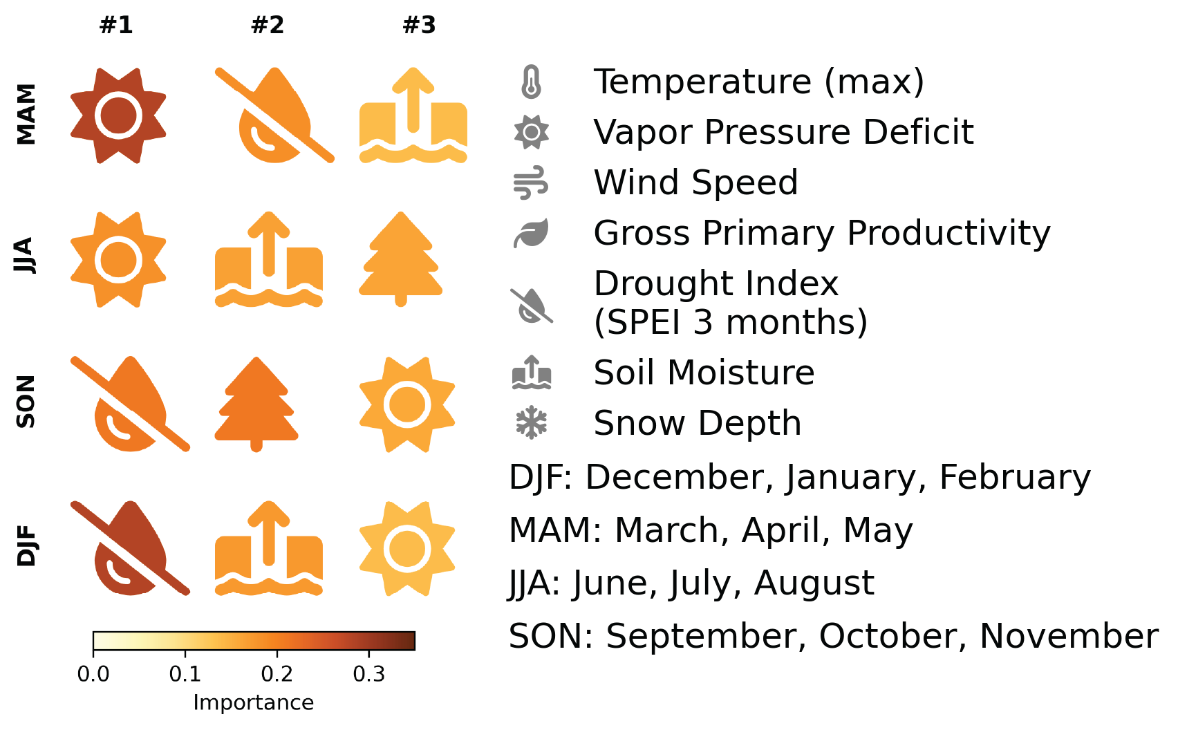 In spring and winter, she also identified a direct link with snow conditions. Prolonged periods of drought lead to low snowpack in Northern Europe, Eastern Europe and the Alps. Combined with strong winds, this results in snow-free areas, where the vegetation is dry and highly flammable at this time of year. This means that forest fires could spread quickly, as was the case in April 2024 at the Stelvio Pass in Italy. "On days when such fires broke out in winter, the snow depth was particularly low," Miller observes.