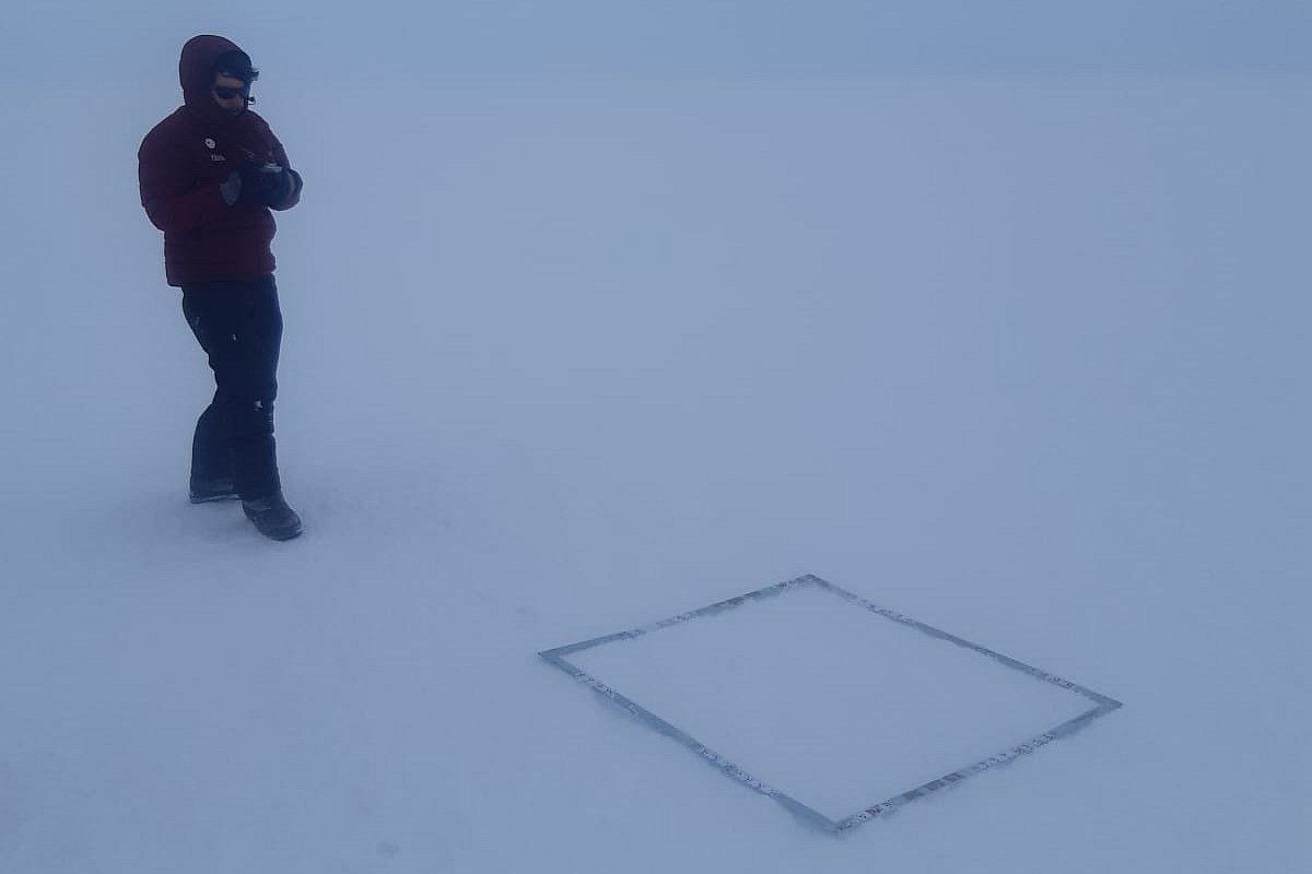 Another of the activities I do this day is photographing the snow. You may ask, why, if it is all white? Are you sure? The wind creates small roughness in the snow and causes small shadows to appear with the light. That is why it does not reflect 100% of the sunlight. This is important because snow with less reflection absorbs more of the sun's heat. To study how the roughness of the snow changes, I am taking photographs of the snow every week from different angles with drawings to identify where the photograph was taken.