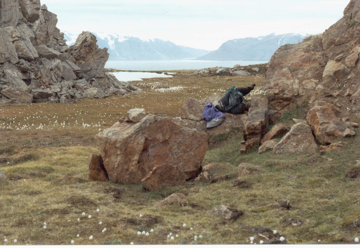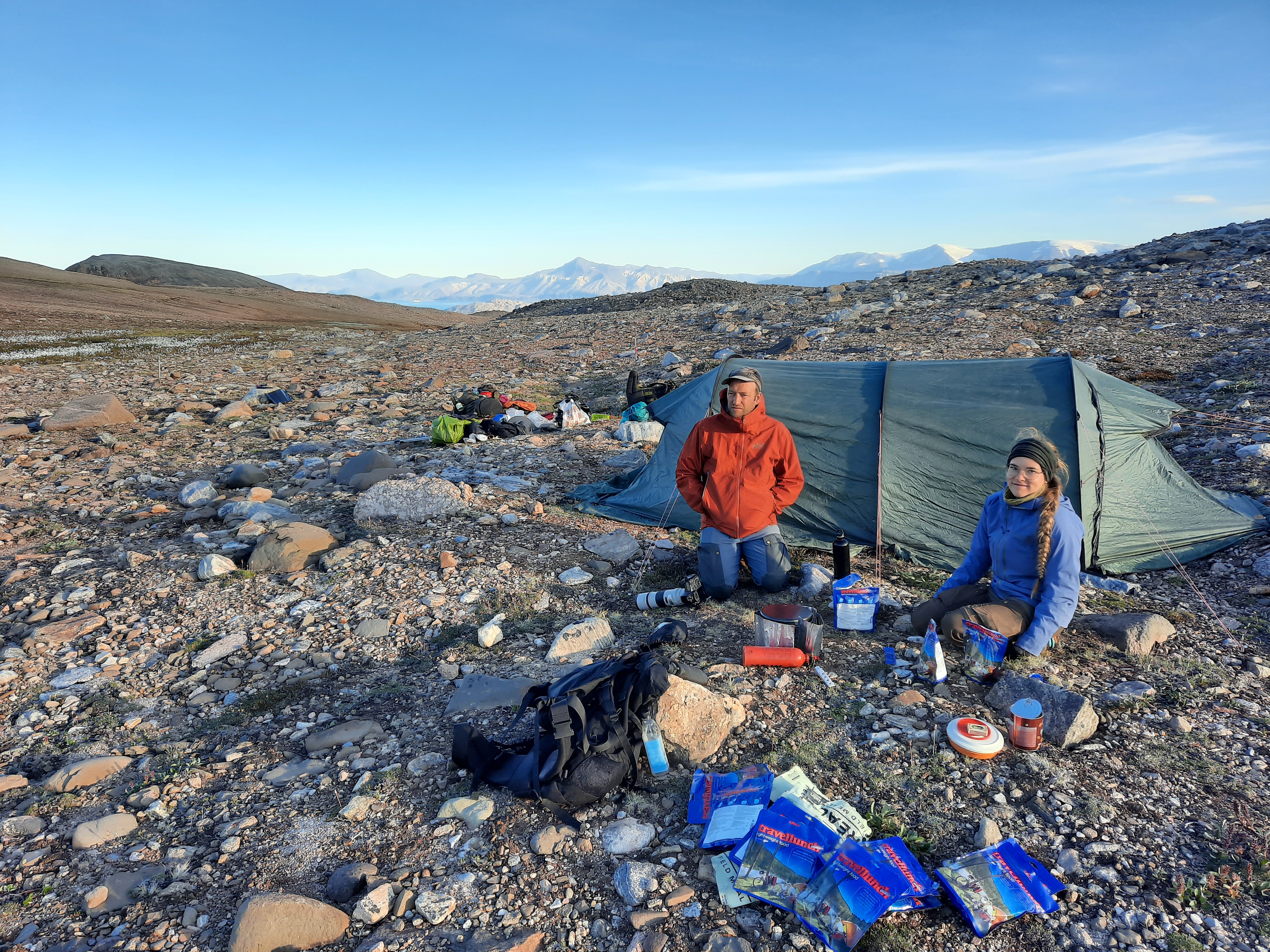 Schwarzenbach recorded all the plant species he found at 19 locations. He also noted all the species he saw en route, and especially the highest elevation at which each species occurred as he made his way down. We replicated this approach as much as possible. Thanks to good photographic documentation of Schwarzenbach's trip, we were able to track down most of the locations. With the weather on our side, we reached the highest point, the summit of Østtinden (located at around 1,275 m), in the first few days. From there, we noted the highest occurrences of all plant species on the way down. We again recorded all the species at every 100 m of elevation, so that we now know their current altitudinal range and can compare it with what it used to be. This was enjoyable but also very time-consuming and arduous work. As it never got dark and we were keen to take advantage of the fine weather, we didn't get back to the tent or hut until after midnight on several occasions.