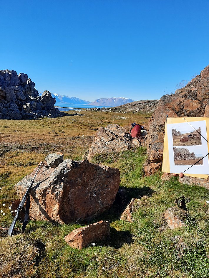 Clavering Ø is where we'll be spending the next two weeks. It's a small historic hut which we've kindly been allowed to occupy (many thanks to Nanok, an association that renovates old huts). There's a little table and three plank beds – what more do we need? The hut was built in 1931, and around us we find the remains of several houses from the same period. It gradually dawns on us that we're in a place steeped in history (and not just of a botanic nature). In 1931, Lauge Koch, with assistance from Paul Gelting (!), constructed a large research station with several houses here. Unfortunately, in 1945, German soldiers destroyed the station – except for the small hut where we're now staying.