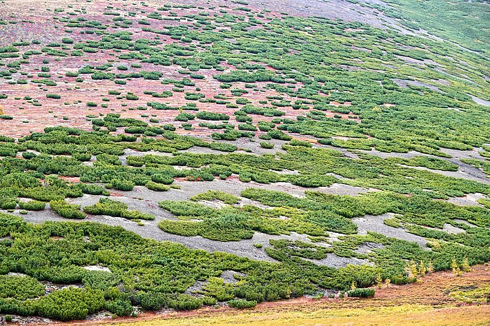 Our first field camp was located close to the volcano vent (67°11’46.14’’N, 165°53’04.69’’E and 570 m asl). We used further helicopter support to transfer to successive field camps along the 56 km-long lava flow field. We ranged up to several kilometres from each camp on foot to conduct the dendrochronological and geological sampling. We collected many core and disc samples from recent and relict conifers, and plenty of rock and sediment samples.
