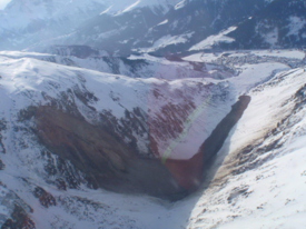 • determining current/initial conditions for the modeling process by taking samples from recent chaotic rock-ice mixtures (e.g. at Val Strem, pictured);
