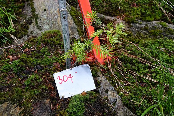 In several mountain protective forests in the upper Valle Mesolcina, a lack of natural regeneration has been observed in recent years, particularly in silver fir (Abies alba Mill.), a highly palatable and slow growing tree species. Sustainable natural regeneration of this tree species is important for maintaining and improving the resilience of protective forests in the Southern Alps. However, increasing wildlife densities can impair the regeneration success. A better understanding of the interactions between forests and wildlife is therefore important for planning concrete measures to improve the adaptation of mountain forests to climate change. This research project analysed the regeneration dynamics of silver fir and other tree species at two sites in the Valle Mesolcina, a southern valley of the Grisons, over a period of seven years (2016 - 2022). We recorded natural regeneration of all tree species in monitoring plots. We also recorded the number of silver fir seedlings (<10 cm height) and saplings (>10 cm - 200 cm height) as well as sapling height growth. We also determined the browsing frequency and intensity. In addition, we analysed the influence of various environmental factors on silver fir regeneration.