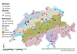 Cooperation FinancingRICH-Soil is part of the SNF-Sinergia project RICH, assessing the first national scale radiocarbon (14C) inventory, encompassing the atmosphere, the terrestrial biosphere and soils, as well as the aquatic continuum (rivers and lakes). Radiocarbon informs about the age, turnover rates, and the sources of carbon in C pools and fluxes. The overall aim of RICH is to use radiocarbon measured in the major carbon pools and fluxes to examine carbon exchange among the various reservoirs and cycling rates on regional and national scales. RICH-SOIL determines radiocarbon signatures in soil carbon pools and fluxes of Switzerland, taking advantage of archived samples, national soil inventory, and in C fluxes (soil CO2 efflux, DOC and DIC leaching) at sites of the LWF (Long-term-Monitoring of Forests) program. These data are used or modelling soil C dynamics and then linked with environmental parameters (climate, vegetation, soil properties) to identify controlling parameters.