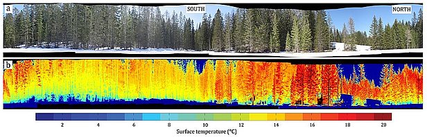 During springtime, the amount of solar radiation penetrating the forest and heating the trees increases as a consequence of the sun rising higher and higher. Thermal imagery has demonstrated that in gaps and sparse forests exposed to high amount of solar energy, tree trunks can be as much as 20°C higher than air temperature. However, in denser forests and shaded edges, tree trunks remain colder than air temperature due to a lack of solar heating.