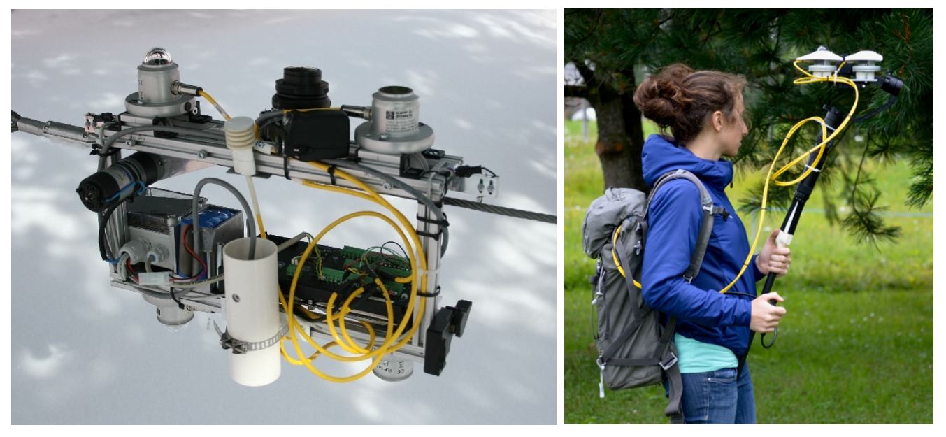 We developed a motorized cable car platform that can perform continuous measurements of solar and thermal radiation to the snow surface along linear transects in forests. A second platform, which consists of radiation sensors mounted on a handheld gimbal (a motorized camera stabilizer), allows us to capture spatial radiation patterns. With these two systems, we observe how radiation to the snow surface varies in both space and time. Linking these measurements to forest structure information such as hemispherical images taken along the same transects improves our understanding of how radiation is controlled by forest structure. The snow surface receives more thermal radiation at locations of denser forest. Solar radiation patterns depend on the exact position of the sun relative to the tree crowns at any given point in time and are therefore highly complex.