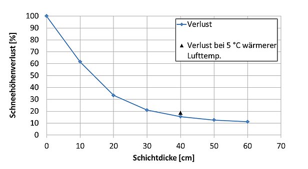 The computer simulations also enabled a deeper understanding of how different weather factors affect the melting process and the way a sawdust layer works. Effective insulation was found to store heat during the day without transferring it to the snow, and then release as much of it as possible at night, mainly through long-wave outgoing radiation. Computer simulations with sawdust layers of different thicknesses showed that at least 30 to 40 cm of sawdust is needed to absorb most of the incoming heat during the day. SNOWPACK simulations also revealed that, with effective insulation, the losses are not particularly great, even at relatively high temperatures. For example, a 5 °C increase in air temperature only results in a snow depth loss of 3%.
