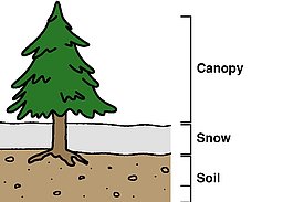 SNOWPACK is based on the modelling of a one-dimensional soil/snow/vegetation column (Fig. 2). It focuses on vertical gradients and transfers at the expense of lateral transfers. It models snow as a porous three-phase (ice / liquid water/ water vapour) medium. To enhance the simulation of the soil/snowpack interface, soil layers (including ice formation,
