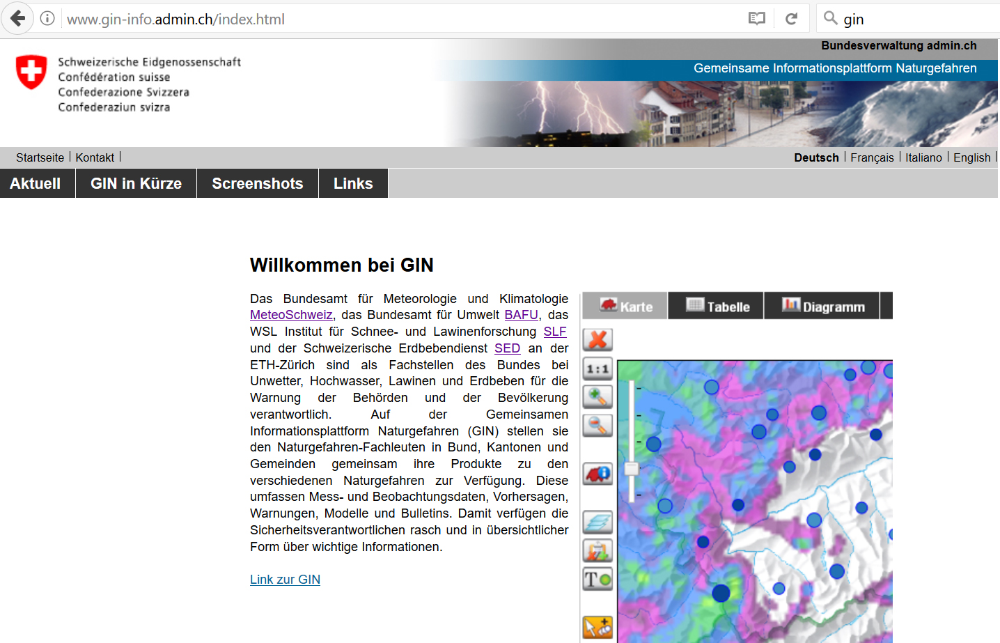 2010 La plateforme commune d’information sur les dangers naturels (GIN), développée par le WSL et le SLF en collaboration avec MétéoSuisse et l’Office fédéral de l’environnement, est mise en service.